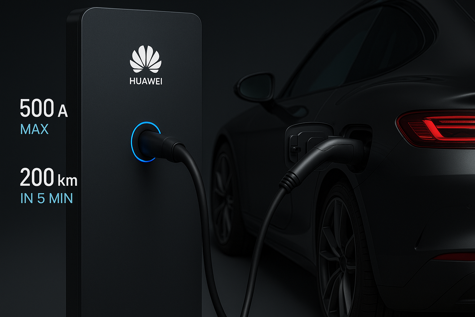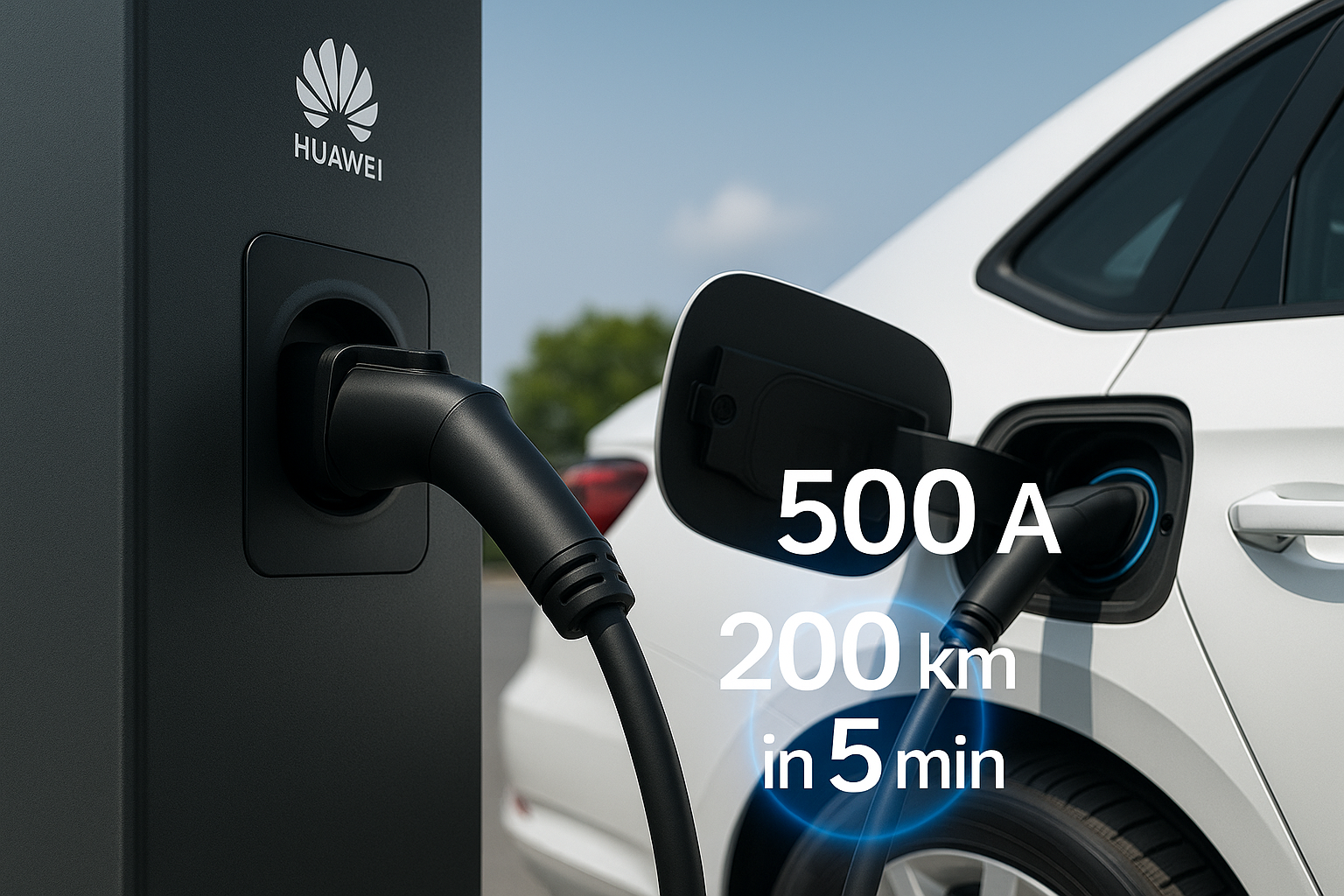 Le stazioni Huawei FusionCharge con raffreddamento a liquido offrono una ricarica ultraveloce, erogando fino a 500 A di corrente, permettendo di ricaricare 200 km di autonomia in soli 5 minuti.